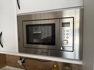 Microondas integrable de la marca Candy con función grill y capacidad de 20 litros, 800W. Como nuevo ya que tiene un uso muy esporádico. 38,8f x 59,4an x 34al - Acabado en acero inoxidable. - Panel de control digital. - Puerta con cristal.