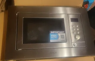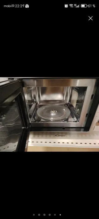 Microondas integrable Candy CA20FMW7NB (20L). Totalmente nuevo, sin uso: solo desembalado para comprobar, nunca instalado ni conectado. Potencia micro 800W y grill 1000W. Incluye plato/crisp, accesorios y embalaje original. Aporto factura de MediaMarkt (mayo 2025) para garantía. Tiene una abolladura visible en el lateral frontal (detalle estético, ver fotos), por eso el precio. Medidas: 59,5 (ancho) x 34,35 (fondo) x 38,8 cm (alto). Entrega en mano.