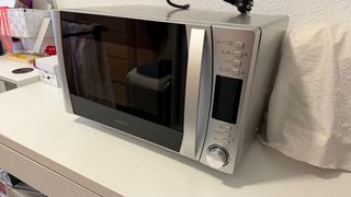 Microondas Candy en color plata y negro. Un electrodoméstico funcional para tu cocina. - Diseño moderno. - Panel de control intuitivo.