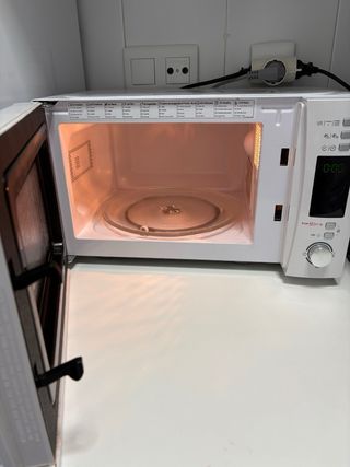- Capacidad: 25 L - Función Grill - Color: Plateado 1450W, 5 Niveles, Digital, 40 Programas, Bloqueo, Plato 31,5CM, Grill Rack. Está como nuevo y precio en tienda es sobre 140. Disponible a mediados de febrero