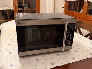 Microondas General Electric serie Profile. - Potencia 1450W - Grill 1200W. - Convección de aire 1550W. - Medidas compartimento interior: 33cm x 33cm y 24cm de alto - Peso 20kg - Utilización es casa familia de 4 personas solo para calentar. El interior es 100% acero inoxidable y el exterior combina el acero inoxidable con lacado negro. Acaba de ser renovado internamente cambiando la placa de mica, el condensador, el diodo y el magnetrón para asegurar una larga vida sin ningún problema (dispongo de las piezas originales que aun funcionan).