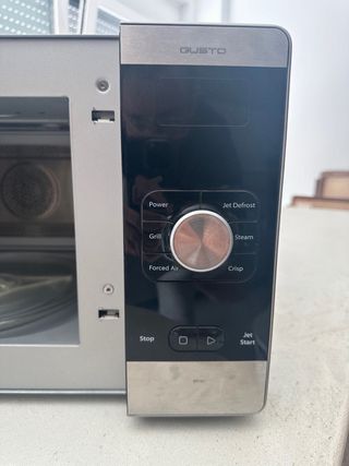 Panel de control para microondas en buen estado. - Incluye panel de control con funciones de microondas, grill, descongelación y convección. - Dispone de menú automático con varias opciones de cocción. - Cuenta con temporizador y selector de peso. - El panel presenta algunas marcas superficiales de uso.