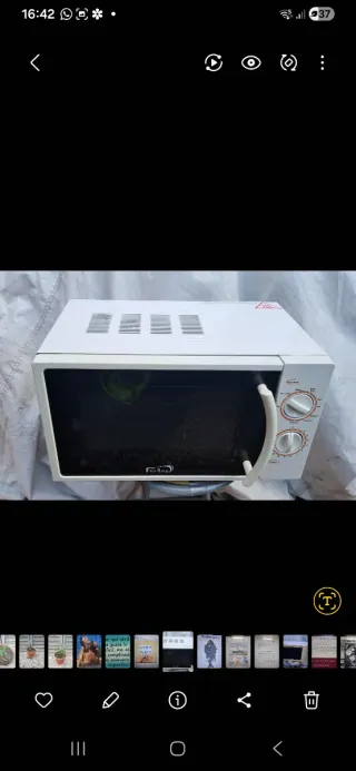 Microondas Orbegozo con grill en muy buen estado y funcionando perfectamente. Muy fácil de usar porque tiene mandos mecánicos (ruletas), mucho más fiables que los digitales. Ideal para calentar, descongelar o cocinar de forma rápida. Características: ✔ Función microondas + grill ✔ Mandos mecánicos muy fáciles de usar ✔ Plato giratorio ✔ Varias potencias ✔ Temporizador Está limpio y listo para usar. Se vende por cambio de electrodomésticos. Se puede ver sin compromiso.