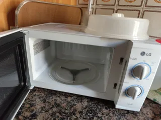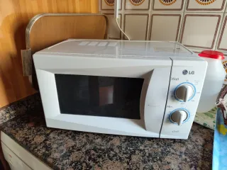 Microondas LG en color blanco, perfecto para tu cocina. - Modelo con mandos giratorios para potencia y tiempo. - Función Grill.