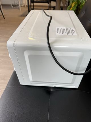 Microondas de la marca ARTROM en color blanco. Cuenta con dos mandos giratorios para seleccionar la potencia y el tiempo. - Mandos para potencia y tiempo. - Diseño compacto. Tiene dos pequeños roces en el interior pero funciona perfectamente