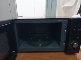 Microondas Negro marca HOME con grill, Horno Conveccion, descongelación y función combinada de microondas con grill y conveccion. Varios niveles de potencia. Está en buen estado en general con algún signo externo del uso. Se entrega limpio y funcionando perfectamente. MEDIDAS 52x32x45cm Microondas #buen estado #vitroceramica #grill #inoxidable #acero #Samsung #induccion #plato microondas #repuestos #mica #fusibles #magnetron #whirpool #transformador #poco uso #bajo consumo #Teka #placa #horno #potencia #saivod #encastrable #negro #azul #LG #balay# gris #buen uso #como nuevo#low cost#Orbegozo#limpio #pequeño#cecotec#retro#vintage