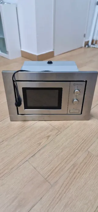 Microondas de pared con acabado en acero inoxidable. Funciona perfectamente. Tiene los números un poco borrados. Marca balay