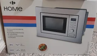 Horno microondas integrable de la marca Carrefour HOME. Diseño moderno en color plateado. - Capacidad de 20 L. - Potencia de 800W. - Plato de vidrio de 24,5 cm. - Temporizador hasta 95 minutos.