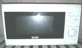 Microondas SVAN modelo SVMW700, potencia 700W. Funciona correctamente. Estado usado, con marcas normales de uso en el interior (ver fotos), nada que afecte a su funcionamiento. Características: Potencia salida: 700W Controles mecánicos (rueda de tiempo y potencia) Plato giratorio incluido Ideal para segunda vivienda, alquiler, obra o uso básico Se puede ver y probar sin compromiso. Entrega en mano. Mide 43,5 x 35 x 26 cm