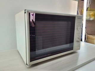 Microondas Sharp en buen estado, con medidas de 44cm de ancho, 36cm de profundidad y 26cm de alto. Tiene una picada como puede verse en una foto y señales de uso en la parte superior. Por lo demás es un microondas con gran capacidad, funciona perfectamente y lo vendo por reforma de cocina porque es demasiado grande para la cocina de ahora. Me costó 150€. - Marca: Sharp - Color: Blanco y negro - Panel de control digital con varias funciones.
