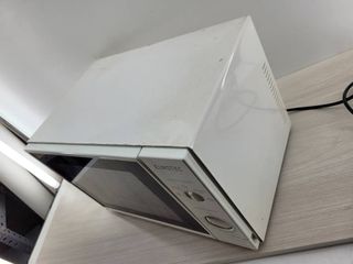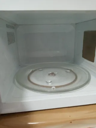 Microondas de color blanco. - Diseño compacto. - Panel de control con mandos giratorios. funciona perfectamente aunque tiene algunas marcas de uso