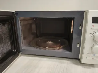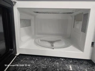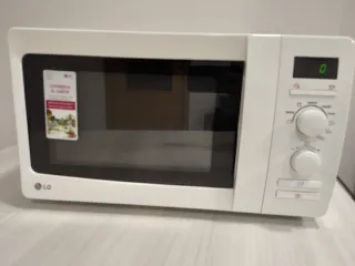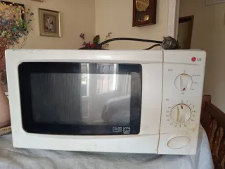 Microondas LG en color blanco, con mandos giratorios para ajustar la potencia y el tiempo. ● Marca: LG ● Modelo: MG3924W ● Color: Blanco ●Mandos: Potencia (Watt) y Tiempo (Min) ●Función Grill y Descongelacion ● Potencia: maximo 1550W ●Medidas: -Alto 26cm -Profundo 29cm - Largo 45cm Lo vendo porque voy a cambiar la cocina , esta usado pero en perfecto estado, ya que la casa la uso de segunda residencia