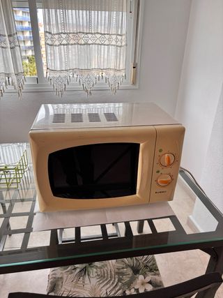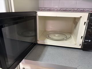 Microondas Taurus en buen estado. - Color plateado. - Diseño moderno. - Mandos giratorios. - Medidas: 44 cm ancho x 24 cm alto x 31cm de fondo. Funciona perfectamente. Sólo tiene una pequeña cosita (última foto)