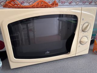 Microondas en color beige, un electrodoméstico práctico para tu cocina. - Diseño compacto. - Panel de control con mandos giratorios.