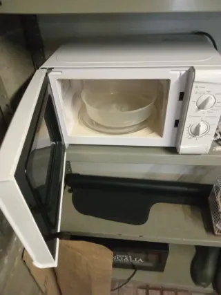 Microondas de color blanco, ideal para tu cocina funciona muy bien Revisada lista para usar - Diseño compacto precio no es negociable ago envío - Panel de control con mandos giratorios.