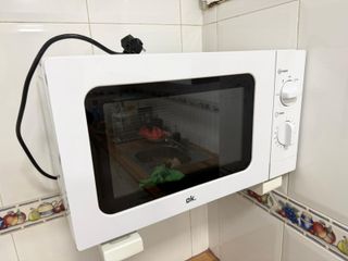 Microondas marca OK, color blanco. Usado solamente 3 semanas. La vendemos por defunción, y por necesidad de desalojar la vivienda.