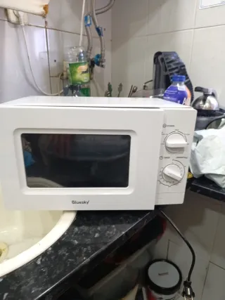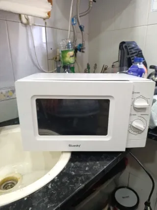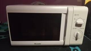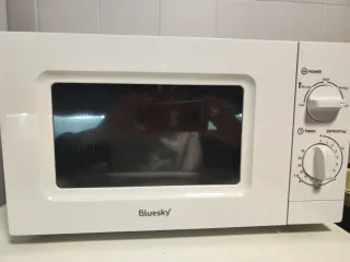 Microondas de color blanco Marca Bluesky sin grill , perfecto para tu cocina. Cuenta con un diseño compacto y funcional. esta en la garriga y tb se puede cojer en mi ubicacion. - Mandos giratorios para ajustar tiempo y potencia. - Puerta con ventana para visualizar el interior. - Cable de alimentación incluido.