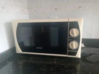 Microondas Ansonic de segunda mano en color crema. Sus medidas son 45 cm de ancho, 34 cm de profundo y 24 cm de alto. - Color crema. - Marca: Ansonic. - Medidas: 45x34x24 cm.