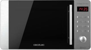 Microondas Cecotec ProClean 3010 en color negro y plata. Cuenta con una capacidad de 20 litros y una potencia de 700W. - Tecnología 3DWave para una cocción uniforme. - Función Ready2Clean para una fácil limpieza. - 5 niveles de potencia. - 6 programas automáticos.