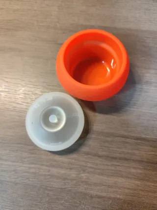 Molde para cocinar huevos en el microondas con forma de huevo. - Color naranja y tapa translúcida. - Diseño compacto.