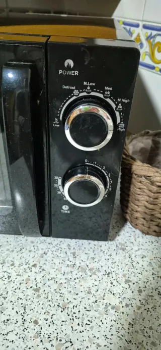 Microondas de color negro de la marca Orbegozo. Un un microondas que calienta muy bien están perfectas condiciones lo único que se me ha perdido el plato y no lo encuentro - Diseño moderno y compacto. - Mandos giratorios para ajustar tiempo y potencia.