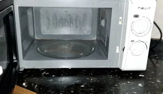 Microondas Orbegozo en color blanco y negro seminuevo,tecnología 3DWave,6 meses de garantía - Diseño compacto y funcional. - Mandos giratorios para potencia y tiempo.