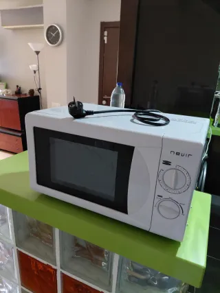Microondas de la marca Nevir en color blanco, ideal para calentar y cocinar, con bandeja interior para poder calentar dos platos a la vez.