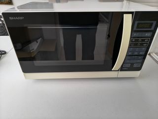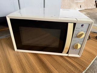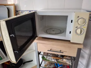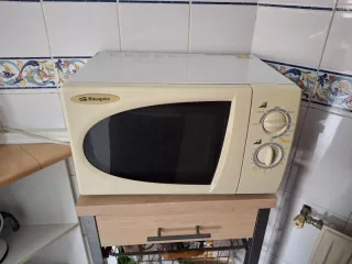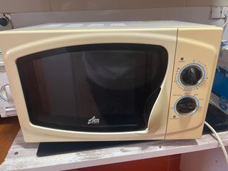 Microondas en buen estado, ideal para tu cocina. - Color blanco crema. - Diseño compacto. - Mandos giratorios para tiempo y potencia.