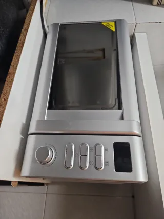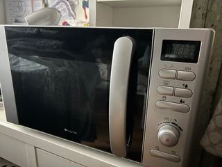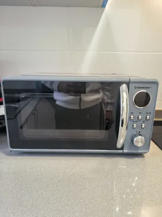 Microondas de la marca Silver Class con un diseño moderno y elegante. - Acabado en color plateado y negro. - Dos mandos giratorios para ajustar la potencia y el tiempo. Funciona perfectamente lo que está oxidado bajo plato interior como se muestra en fotos..