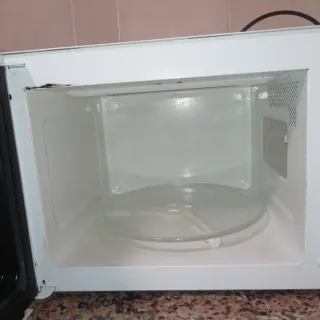 Microondas en buen estado, listo para usar. - Color blanco. - Plato giratorio de cristal.