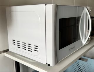 Microondas Candy en color blanco, con un diseño moderno y elegante. - Puerta con ventana. - Panel de control digital. - Función Eco.descascarillado pero funciona