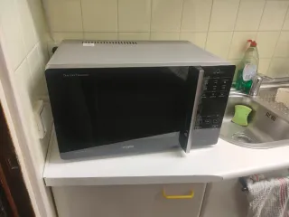 Hola! Busco un nuevo hogar para mi microondas. Está en buenas condiciones. - Funciona correctamente. - Medidas compactas, ideal para espacios reducidos. - Color blanco.