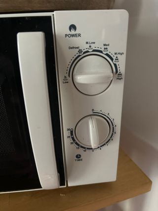 Microondas en excelente estado, casi sin uso. - Color blanco. - Plato giratorio de cristal. - Mandos de potencia y tiempo.