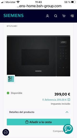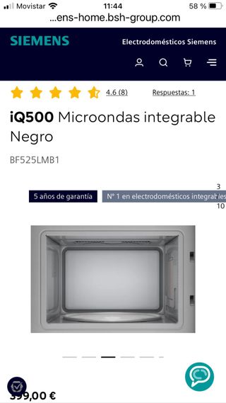 Microondas Siemens modelo BF525LMB1 en color negro. Encastrable sin marco. Cristal negro. Plato 25,5cm. Embalado de fábrica. Esta sin estrenar, ni siquiera se ha sacado del embalaje. Precio en fabrica 399€. Nos consto 395€. Para una cocina que al final no se puso. Recogida en Ugena.