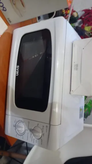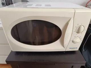 Se vende por reforma. Se puede recoger el 14-15 de marzo. Microondas de color blanco. Cuenta con dos mandos giratorios para ajustar la potencia y el tiempo. - Mandos para potencia (Low, Defrost, M.Low, Med, M.High, High) y tiempo (hasta 30 minutos). - Puerta con cristal. - Asa lateral para apertura.