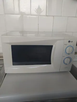 Microondas de sobremesa en color beige/blanco. Está como nuevo, funciona muy bien. Está en Granada, no hago envios - Marca LG. - Panel de control con diales para tiempo y potencia. - Función de descongelación. - Cable de alimentación incluido.