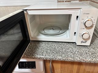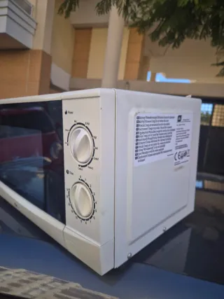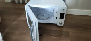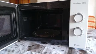 Microondas Cecotec Proclean 3110 en color blanco y negro. Diseño moderno y compacto. Lo compré en marzo porque se me rompió el que tenía, lo vendo porque me mudo a otro piso y tiene microondas. - Medidas: 48cm (ancho) x 38cm (fondo) x 28.5cm (alto). - Panel de control con diales. - Puerta con cristal negro.