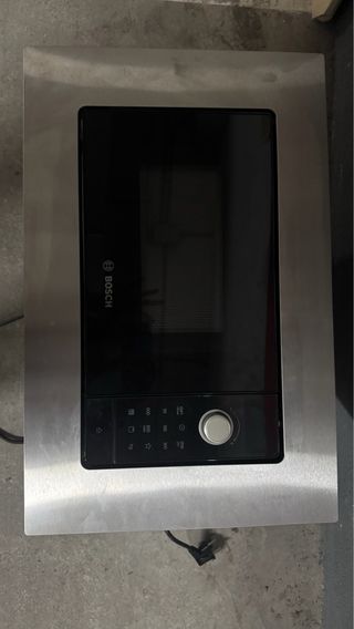 Microondas encastrable de la marca Bosch, completamente nuevo. - Diseño moderno y elegante. - Acabado en acero inoxidable y cristal negro. - Comprado el 23 de Enero