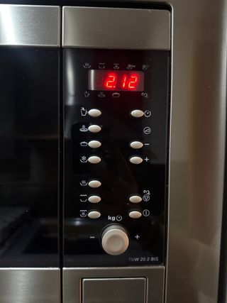 Microondas de encastre con acabado en acero inoxidable. - Diseño moderno y elegante. - Panel de control intuitivo. - Funciona correctamente - Esta en buen estado
