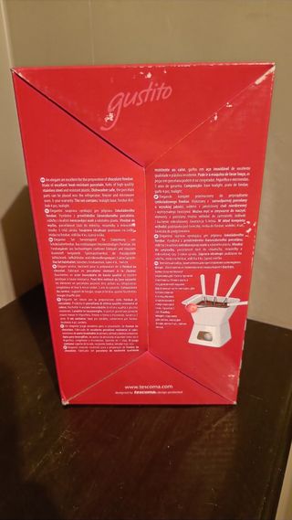 Juego para la preparación de fondue de chocolate. Porcelana resistente al calor. Tenedores de acero inoxidable de alta calidad y plástico resistente. Resistente a frío y calor desde -18 a 200°C. Adecuada para frigorífico, congelador, microondas y lavavajillas. El juego contiene: Base para la vela, Fuente fondue, Tenedor, 4 pz y una vela mas productos de hogar en mi perfil. Entrega en mano