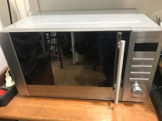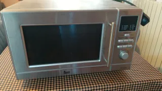 Microondas marca Corbero, en muy buen estado y funcionando perfectamente. Tiene varias funciones, incluyendo microondas, grill y modo combinado, ideal para calentar, cocinar y gratinar alimentos. De encimera 25L potencia 900w acero inox ✔ Potente ✔ Plato giratorio incluido ✔ Varias opciones automáticas ✔ Limpio y cuidado ✔ Puerta y botones en buen estado