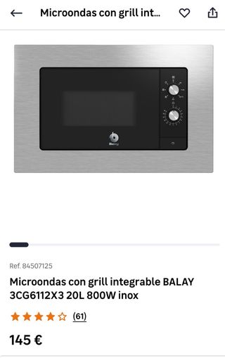 Horno microondas de la marca Balay, diseñado para empotrar. Su acabado en acero inoxidable le da un toque moderno a tu cocina. - Diseño elegante para integrar en muebles de cocina. - Panel de control con mandos giratorios.