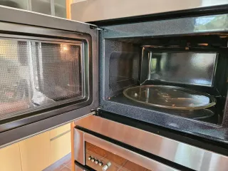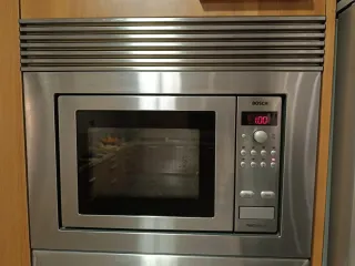 Microondas integrable de la marca Bosch en acabado de acero inoxidable. - Marco de acero inoxidable incluido. - Diseño moderno y elegante. Tiene una pequeña mancha en el cristal que no se va. Funciona perfectamente.