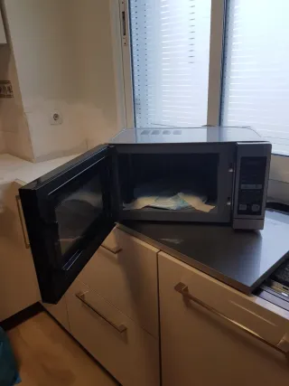 Vendo microondas Teka MW 21 IVS Inox, con función de microondas y grill. Funciona perfectamente y está en buen estado. Se vende únicamente por mudanza y renovación de electrodomésticos. Características: Potencia microondas: 800 W Potencia grill: 1000 W Potencia de entrada total: 1250 W Voltaje: 230 V / 50 Hz Frecuencia microondas: 2450 MHz Acabado en acero inoxidable (Inox) Medidas estándar aproximadas: Ancho 45 cm Alto 26 cm Fondo 36 cm (si necesitas que las mida exactas, lo añado) Estado: Todo funciona correctamente. Limpio, sin golpes y con uso normal. Motivo de venta: Mudanza.