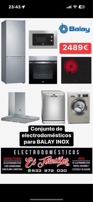 Conjunto de electrodomésticos Balay Inox. - Frigorífico - Microondas - Horno - Vitrocerámica - Campana extractora - Lavavajillas - Lavadora