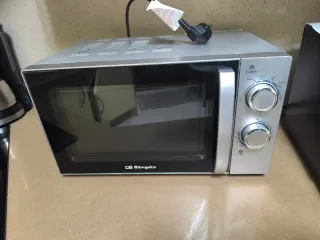 Microondas Orbegozo con mandos mecánicos (muy duradero y fácil de usar). ✔️ Potencia regulable ✔️ Temporizador ✔️ Interior amplio ✔️ Perfecto para oficina o cocina Funciona perfectamente. Se vende por mudanza.