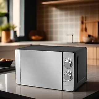 Microondas de color plateado, ideal para tu cocina. - Diseño moderno y funcional. - Panel de control intuitivo.