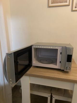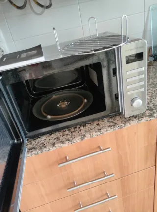 Vendo microondas con grill marca BLUESKY en muy buen estado y funcionando perfectamente. Tiene diseño en acero inoxidable, queda muy elegante en la cocina y además es muy práctico. Gracias a la función grill puedes preparar comidas como en un horno, gratinar, dorar y mucho más. • 28 litros de capacidad • Función grill (gratina y dora) • Diseño en acero inoxidable • Incluye rodete • Plato giratorio de cristal de 32 cm • Medidas: 50 cm largo x 28 cm alto x 35 cm fondo • Funciona perfectamente