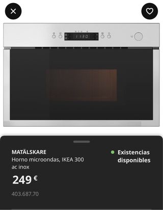 Horno microondas integrado de la serie MATÄLSKARE de IKEA. - Acabado en acero inoxidable. - Diseño moderno y funcional.