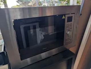 Microondas integrable de acero inoxidable marca Midea, ideal para instalar en columna o mueble de cocina. Se encuentra en buen estado estético y de funcionamiento, con panel digital y selector giratorio para ajustar potencia y tiempo fácilmente. Perfecto para renovar una cocina o sustituir un microondas empotrado sin gastar en uno nuevo. Características Marca: Midea Tipo: Microondas integrable / empotrable Acabado: acero inoxidable Panel con pantalla digital Selector giratorio + botones Funciones automáticas de calentado y descongelación Muy fácil de usar Estado